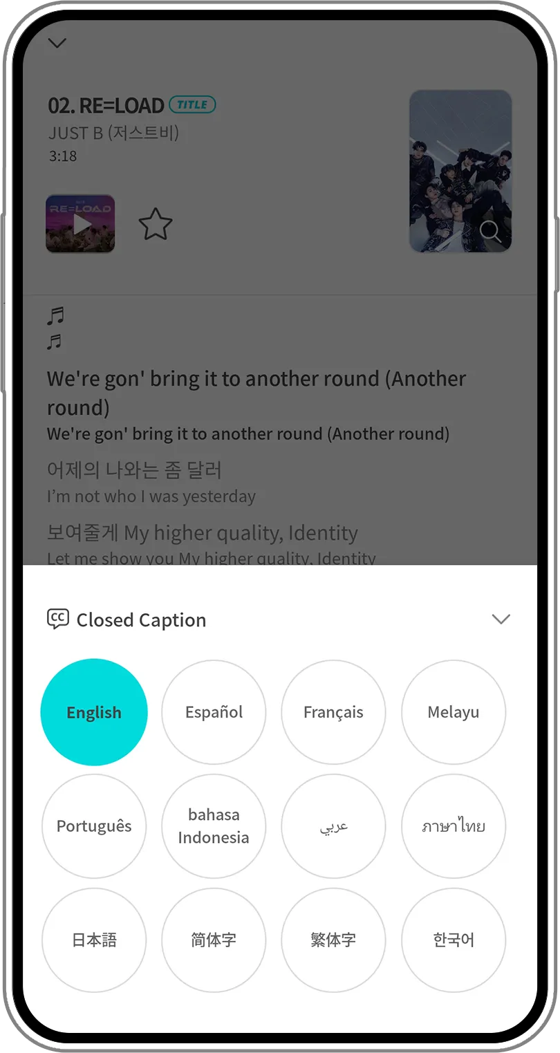 Tekan tombol CC untuk memilih lirik dan simbol fonetis yang Anda inginkan dan nikmati dengan nyaman.
