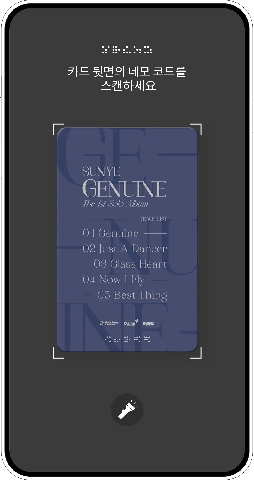 Gunakan tombol Flash kamera di aplikasi Nemoz, atau pindai Kode Nemo dalam terang di bawah pencahayaan alami atau lampu.