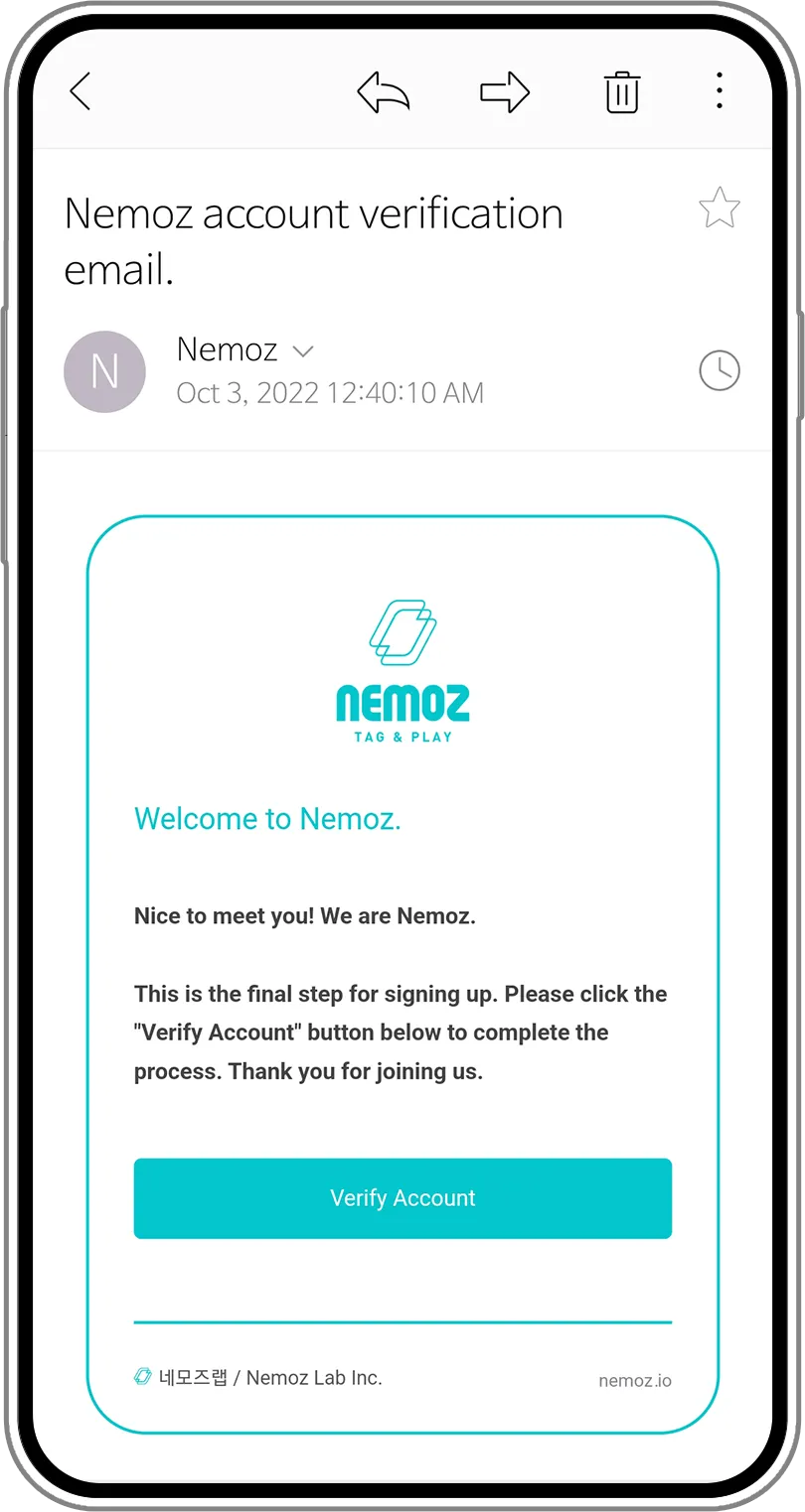 IDに使用したアドレスに認証メールが送信されました。 メールを開き「Nemoz会員認証」ボタンを押してください。 1 分以内に認証メールが届かない場合は、スパムメールを確認してください。